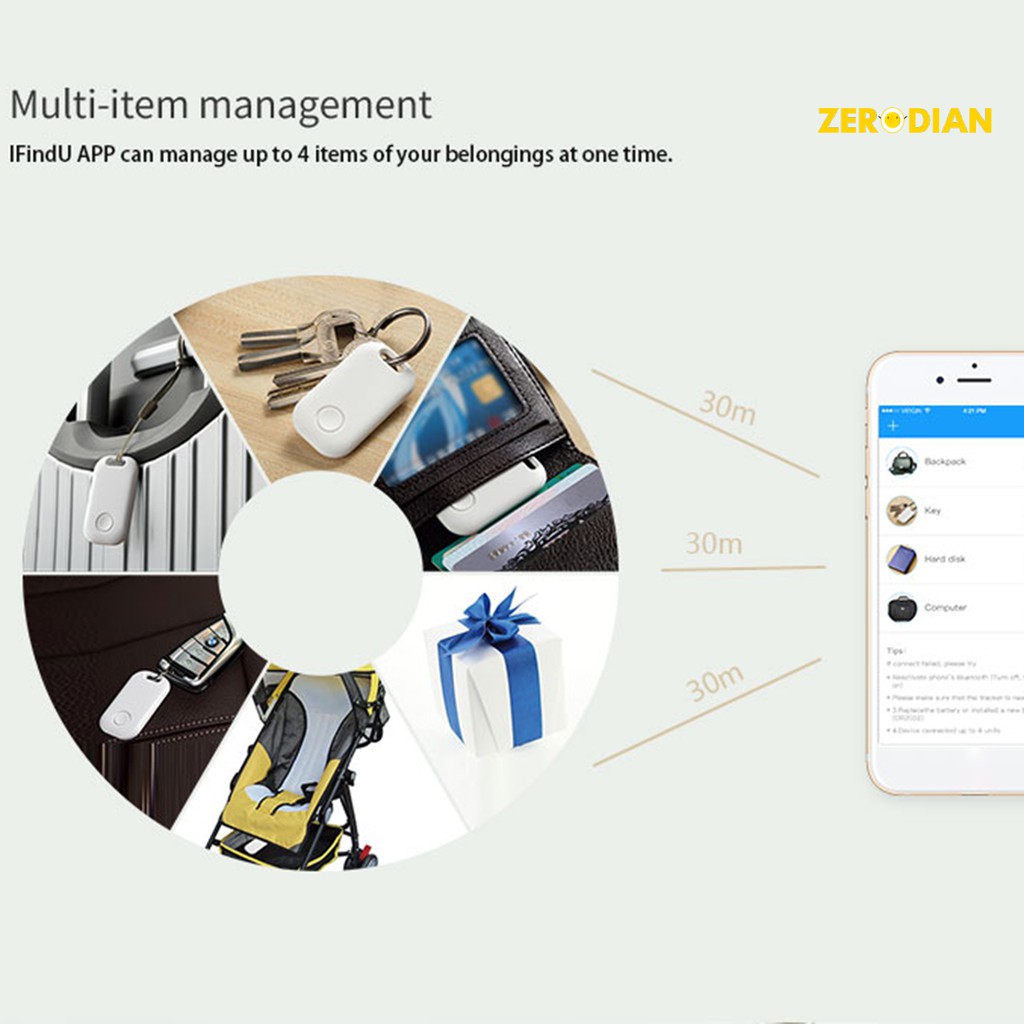 ZERODIAN Mini Smart Tracker Bluetooth Two-way Anti-lost Alarm Kids Phones Key Finder
