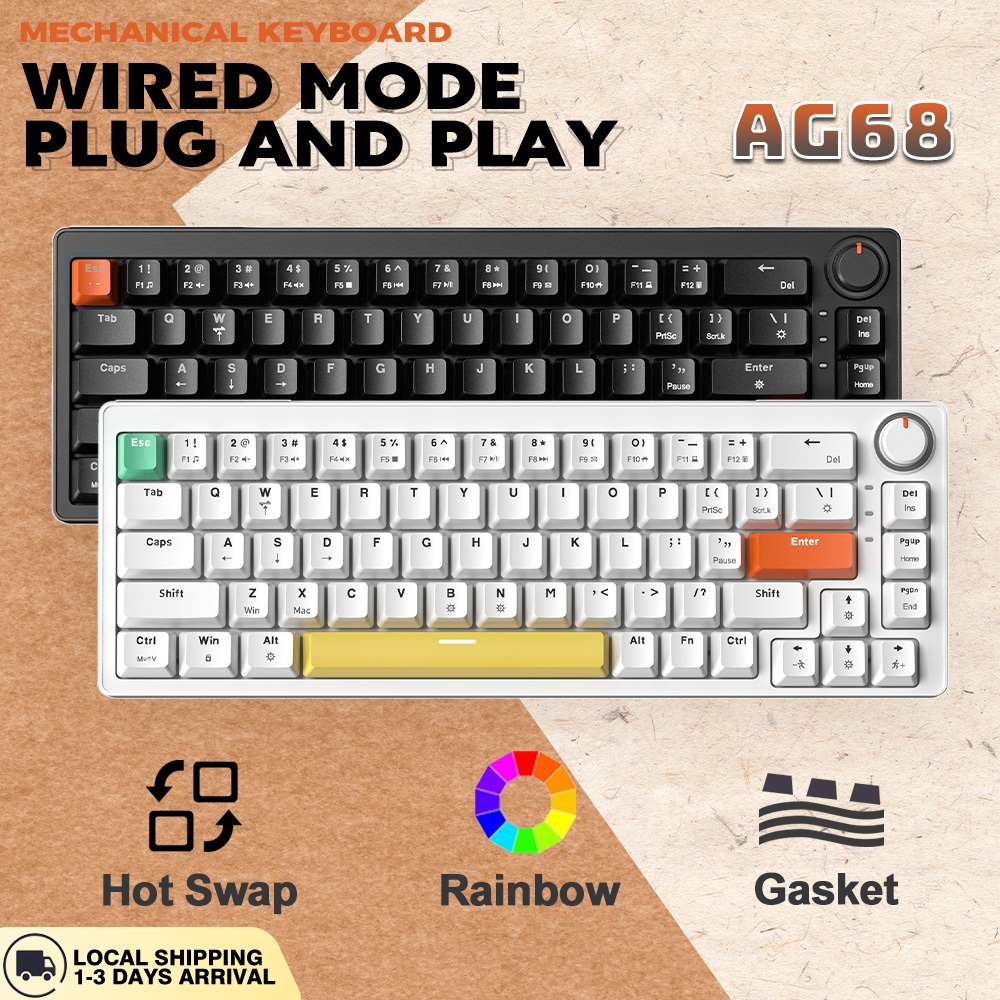 ZIFRIEND AG68 Wired Mechanical Keyboard E68 with Knob Gasket Structure Hot Swapping Gaming Keyboard