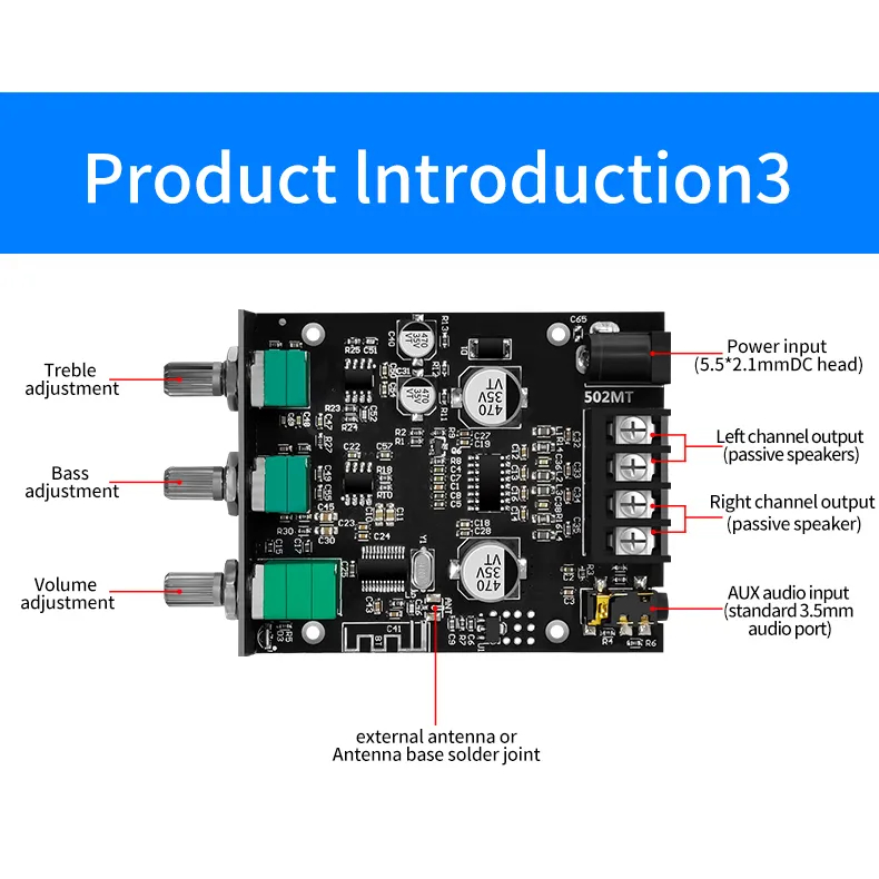 ZK 502MT Mini amplifier Mini amplifier bluetooth 5.0 Subwoofer amplifier amplifier 2x50W amplifier