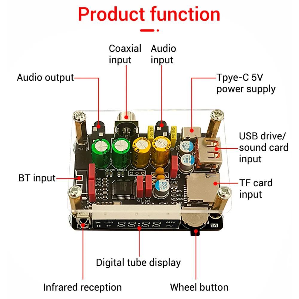 ZK-DAM-K1 DC5V DSP Tuning Preamp Bt Decoder Board Non-Destructive Fever U Disk Coaxial Sound Card TF Decoding Board TYPE-C