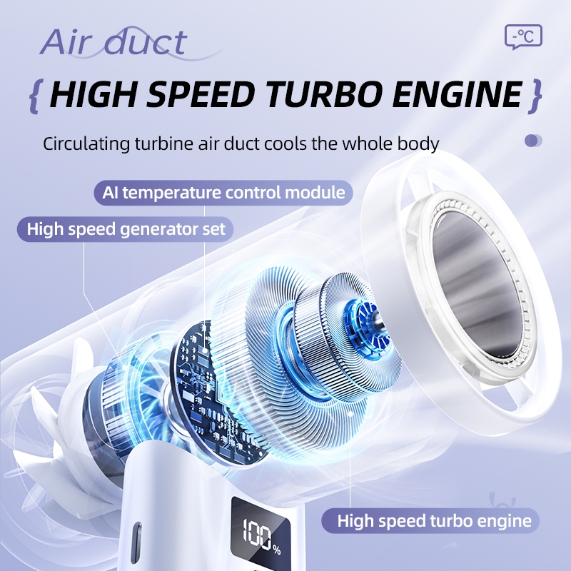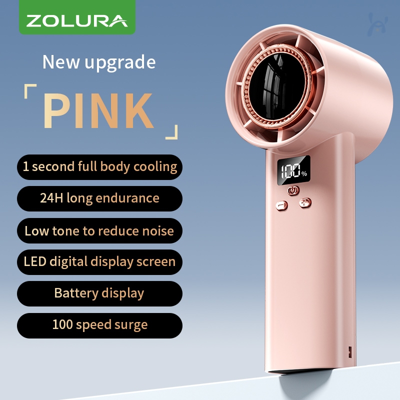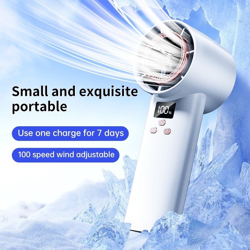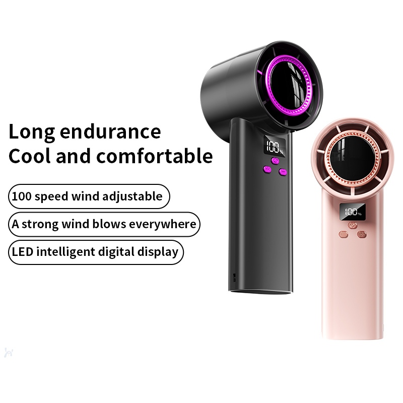 ZOLURA New Mini High Speed Fan With LED Display 100 Gear Wind Speed Portable Turbo Handheld Fan