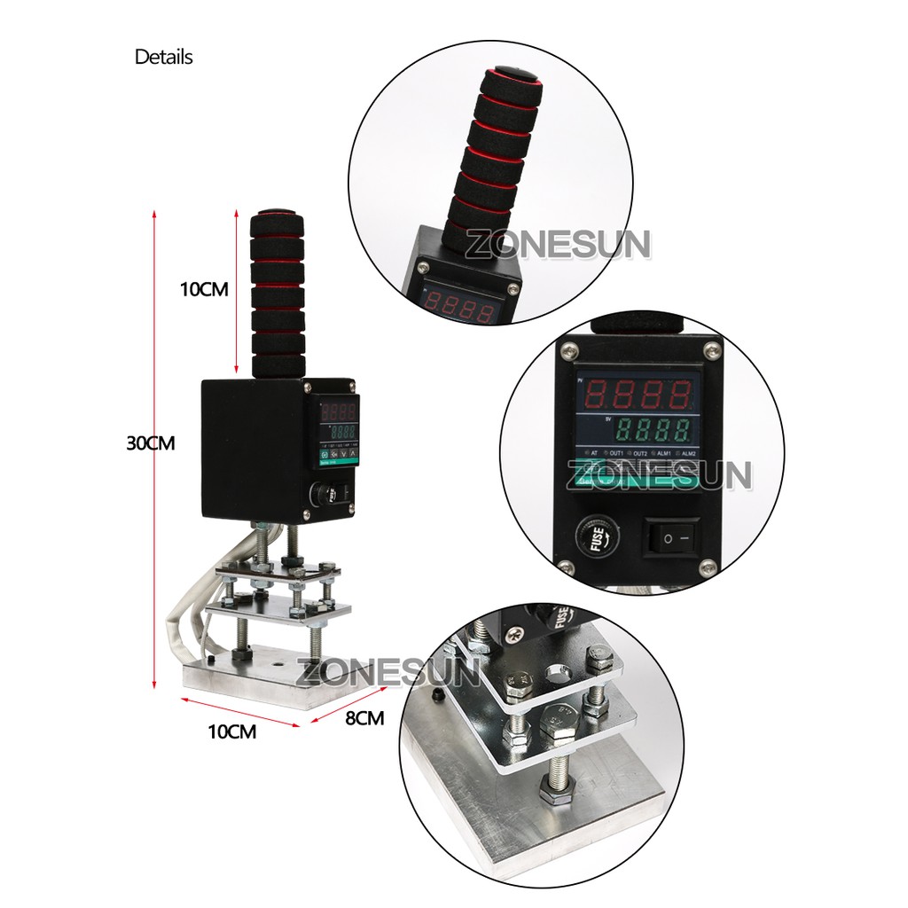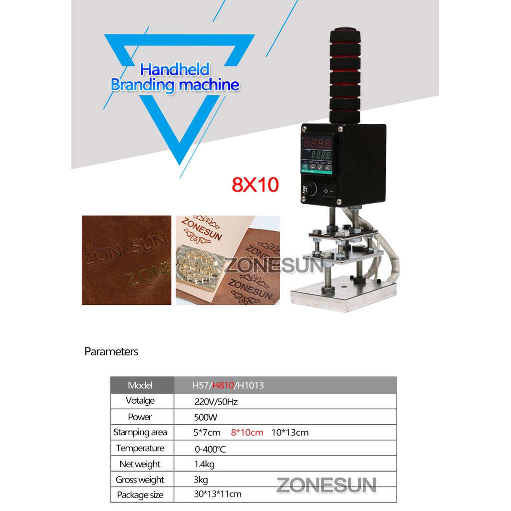 ZONESUN Manual Handheld Leather Embosser Hot Foil Stamping Machine Bronzing Branding Machine Heat Press Machine for Wood Paper Leather Craft Tool (5*7cm 8*10cm 10*13cm)