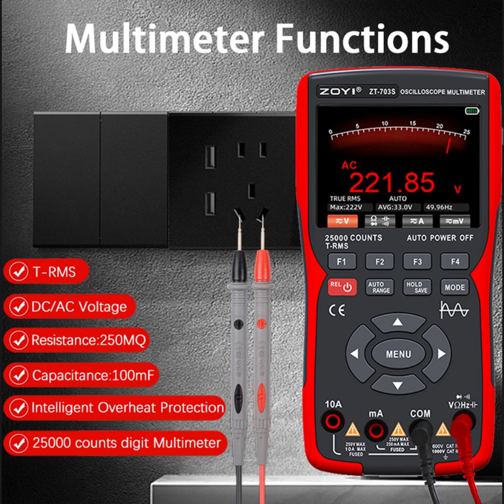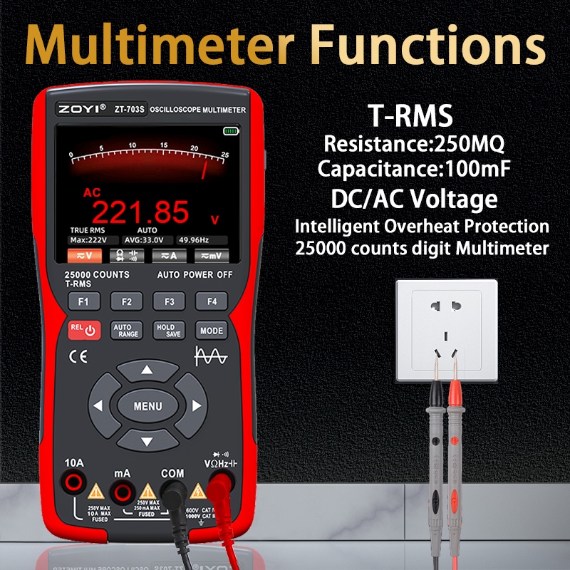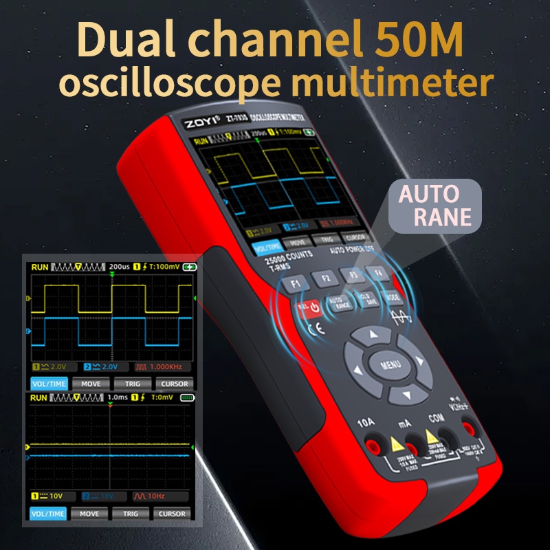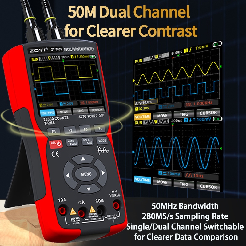 ZOYI ZT-703S 3in1 Dual Channel 50MHz Oscilloscope 25000 Counts Digital Multimeter 280MS/s Tester