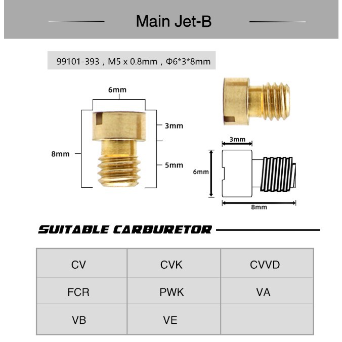 ZSDTRP 10pcs Set Slow/Pilot Jet Main Jet For PWK PWM PJ PE PD FCR Keihin CV CVK CB CE VA Carburetor Vice injectors