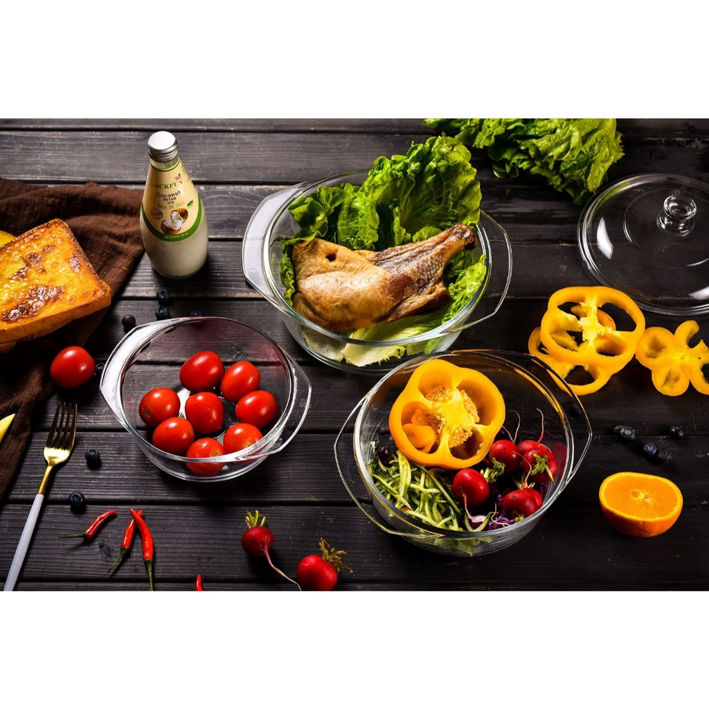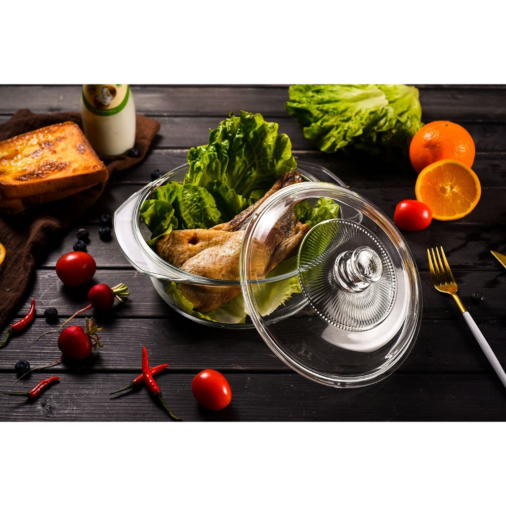 ZSK Glass Casserole Dish with Lid Microwavable Stovetop Safe Container Bow(1pcs)