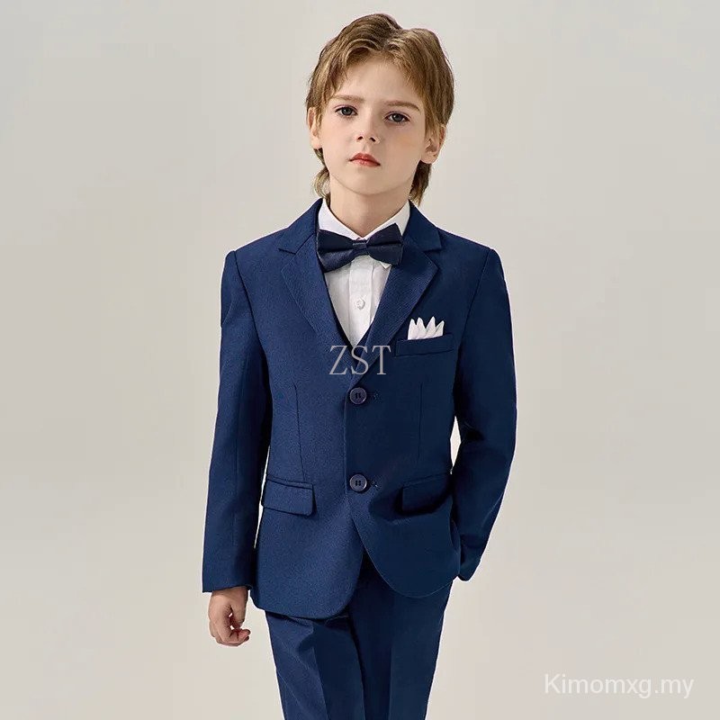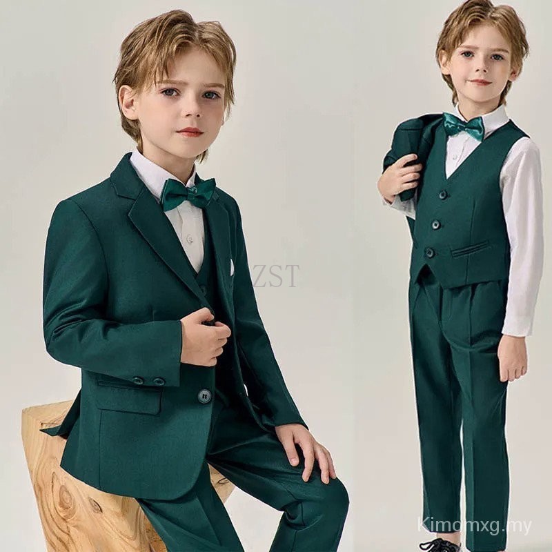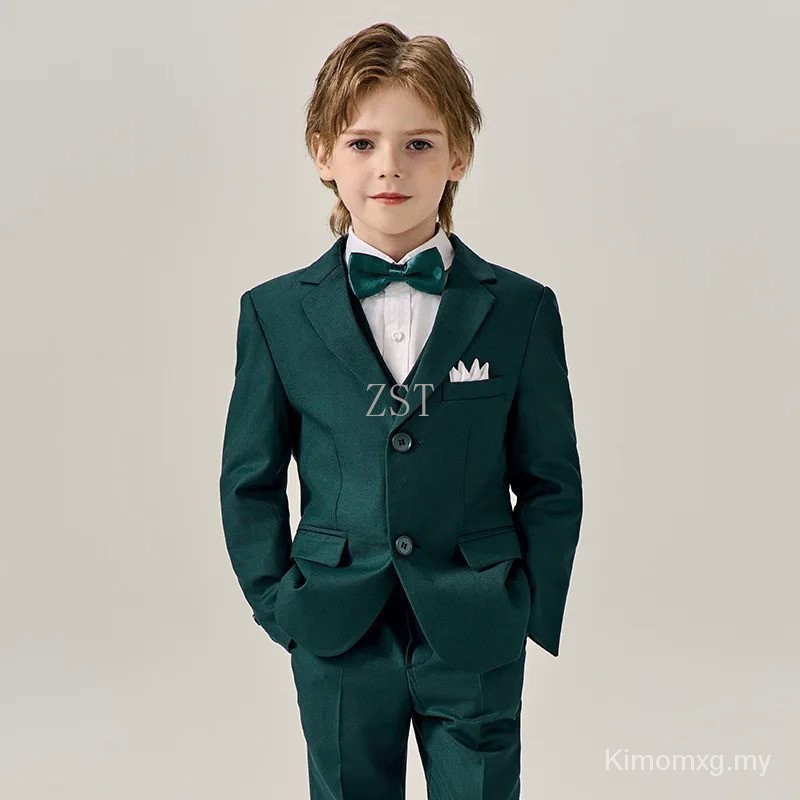 ZST Prince Kids Boys Fomal Set Green Jakcet Vest Pants Bowtie Piano Party Dress Boys Wedding Ceremony Photograph Suit Children Performance Costume