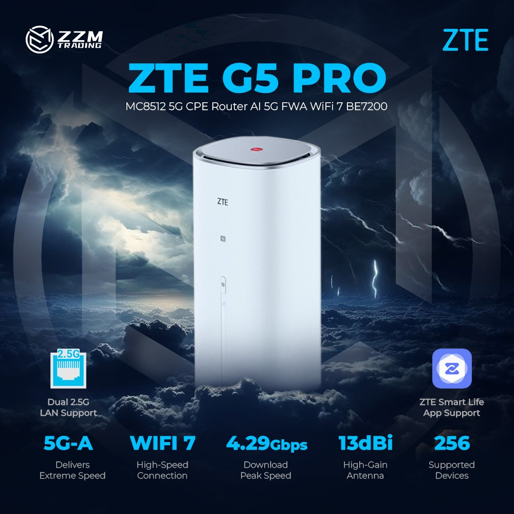 ZTE G5 Pro MC8512 5G CPE Router 5G FWA WiFi 7 BE7200 NFC ZZM Trading