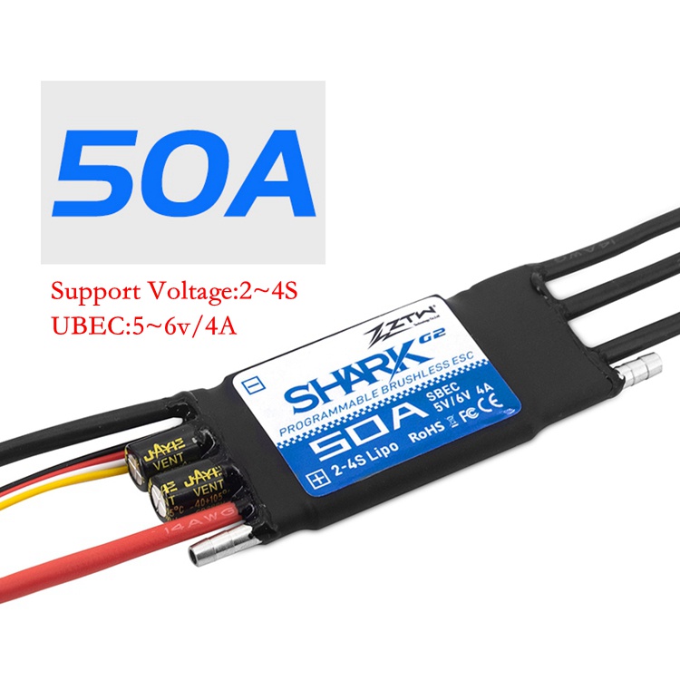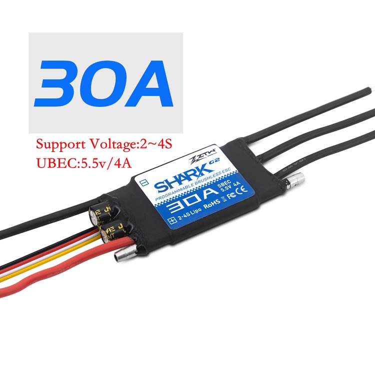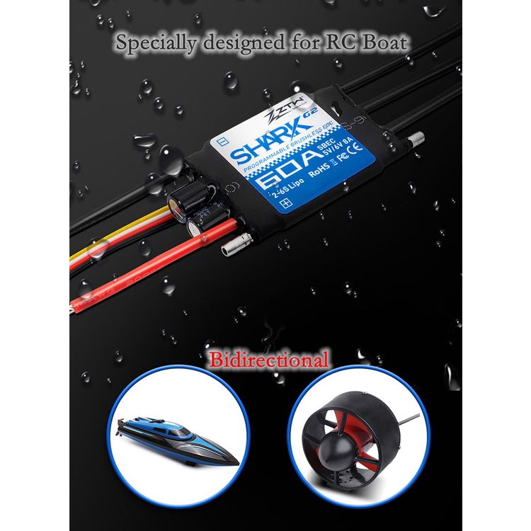 ZTW Shark G2 Brushless ESC 30A/40A/50A/60A/80A/100A/120A 2~4S/6S Water-cooling Bidirectional Waterproof ESC
