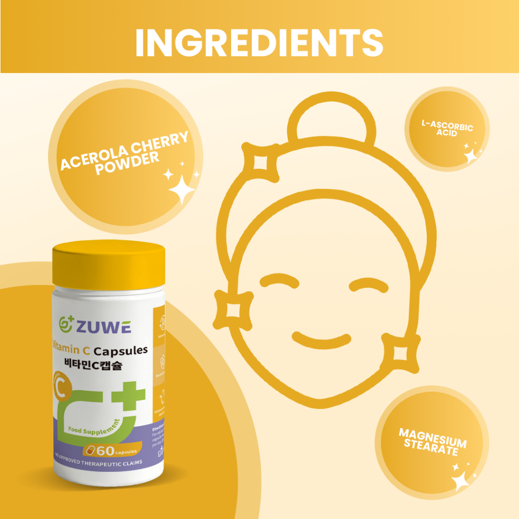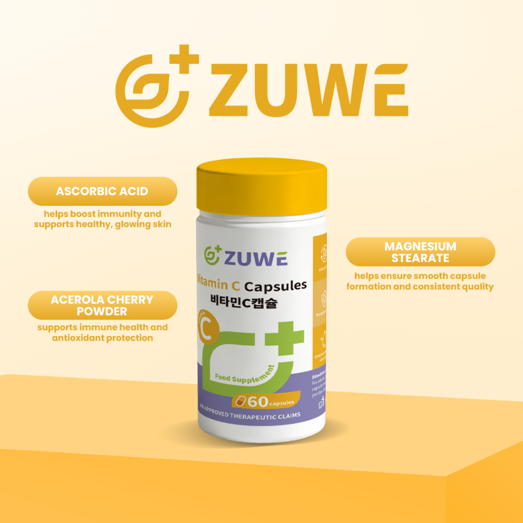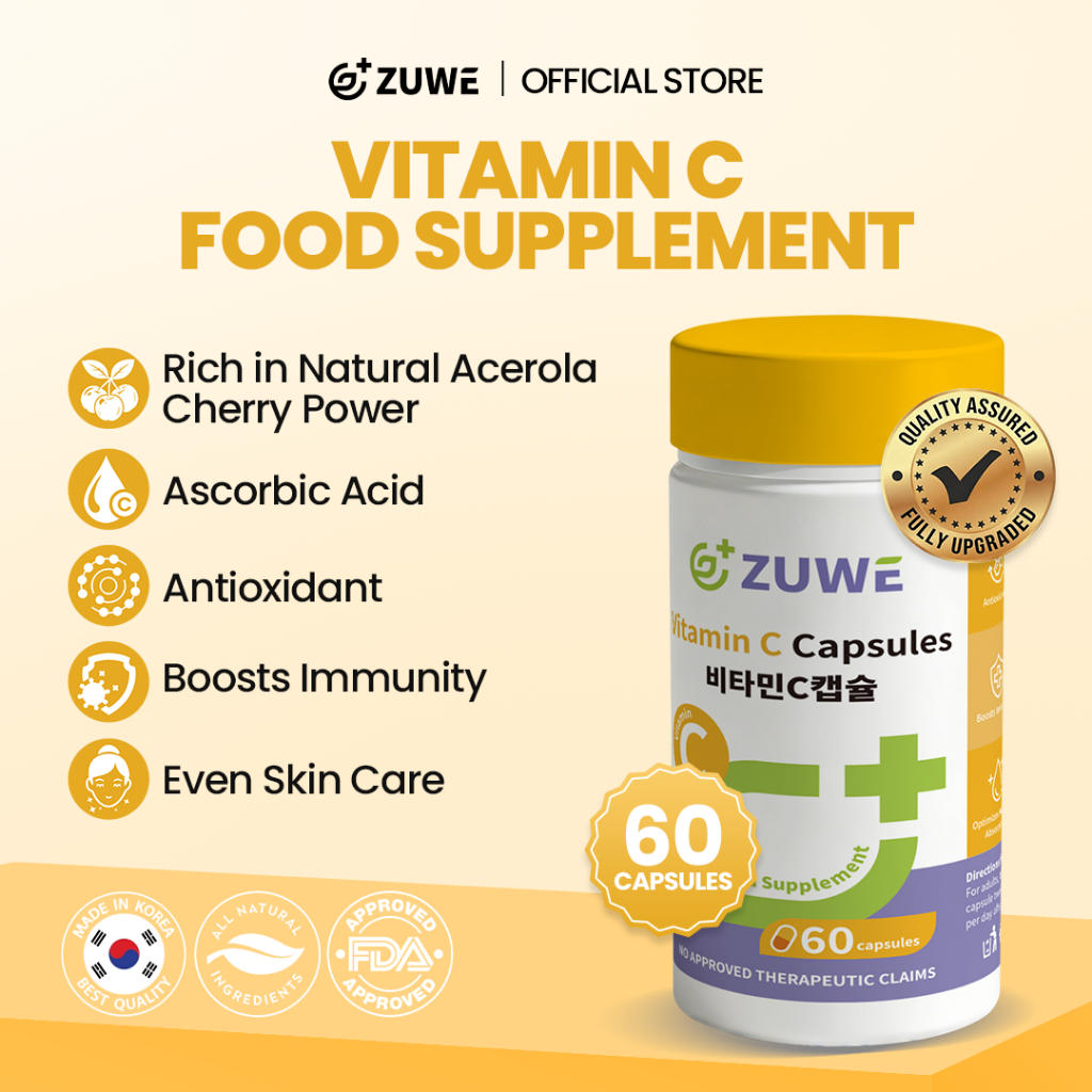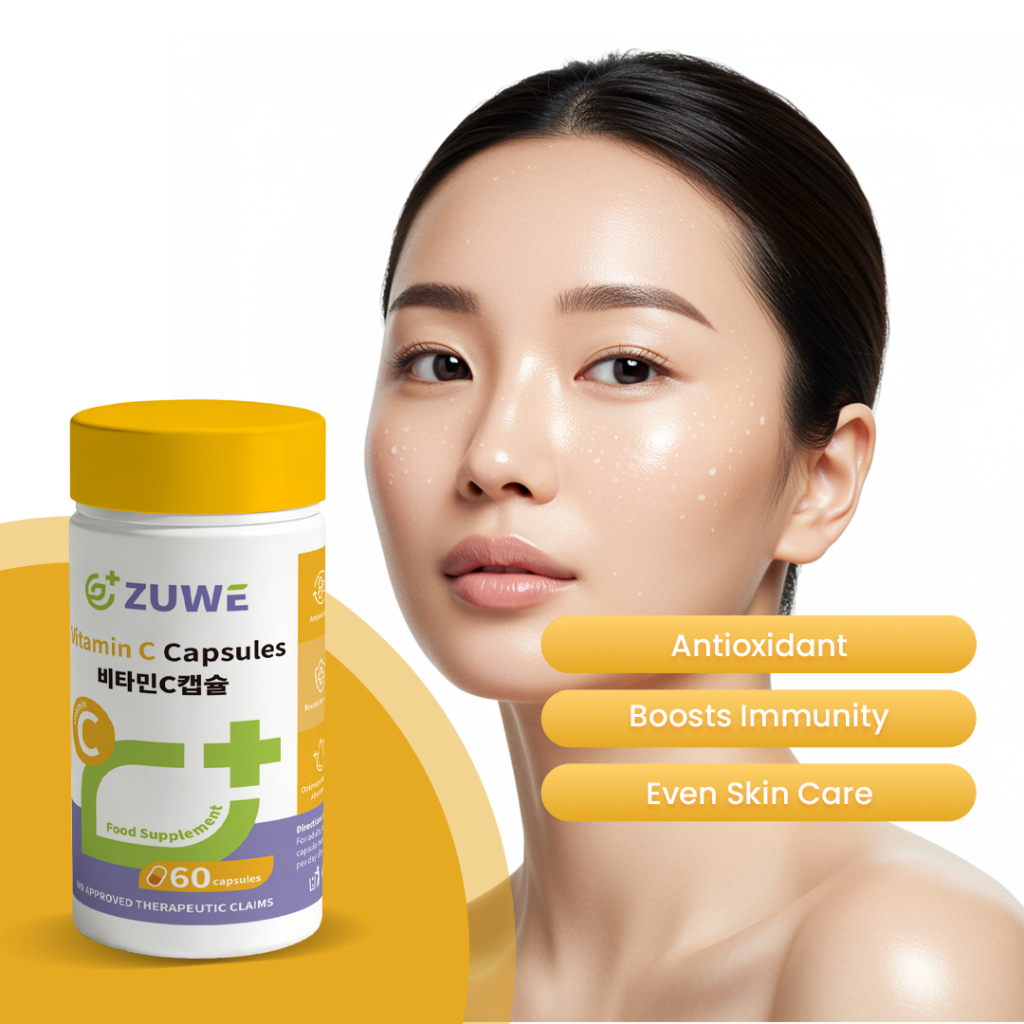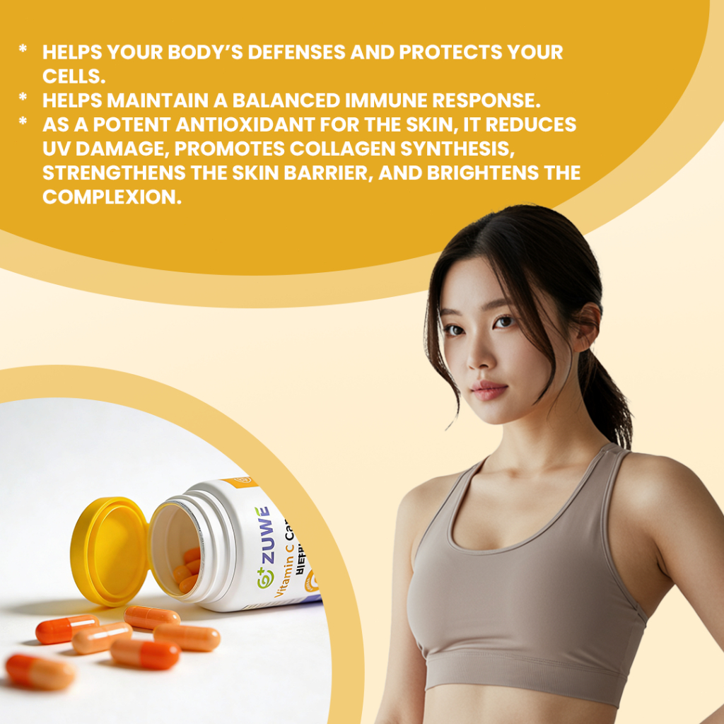 ZUWE Vitamin C Capsules FDA Approved for Glowing Skin & Immunity Boost Ascorbic Acid Supplement