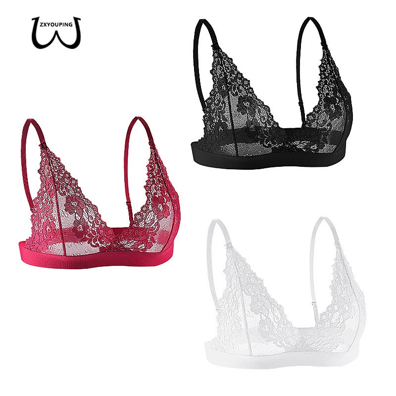 ZXYOUPING Women Sexy Lace French Bra/ Wireless No Padding No breast pads Underwear/ Thin Breathable wisp Tube Top brassiere S-L