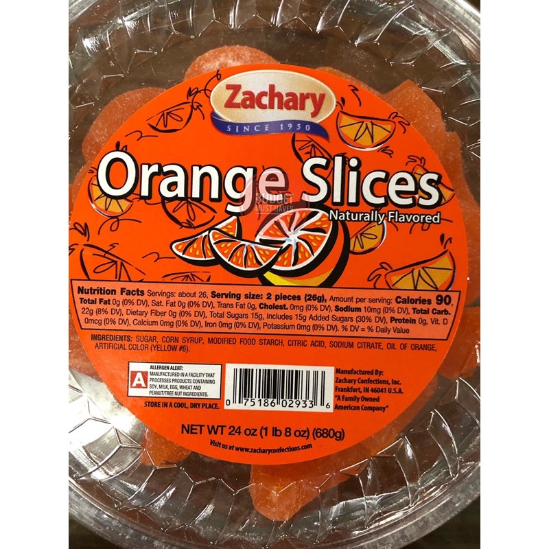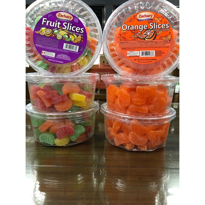 Zachary Jelly Slices in 24oz/680g Tub (Assorted Fruit Slices / Orange Slices)