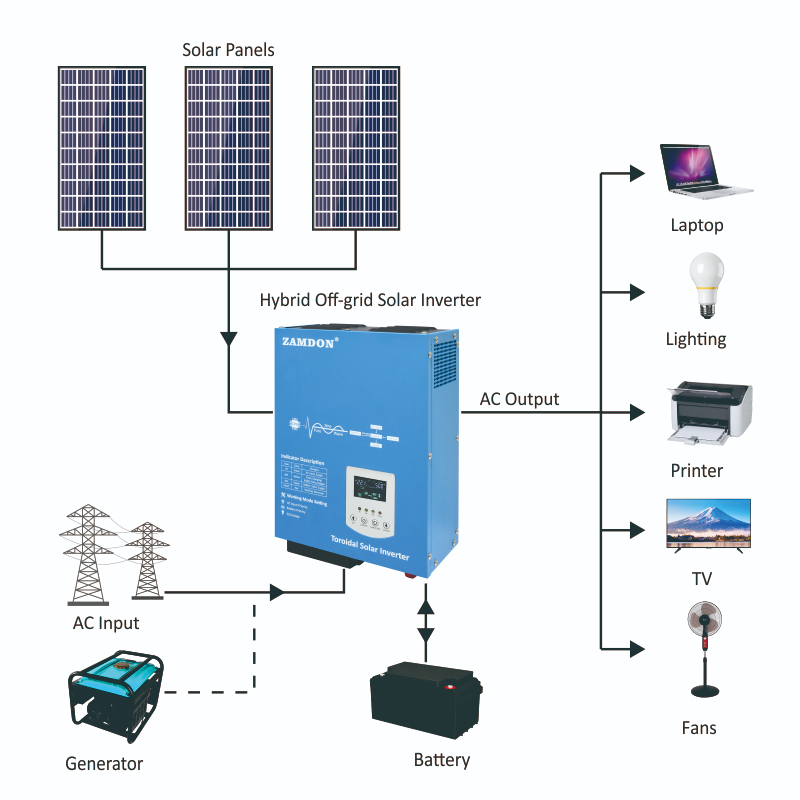 Zamdon 3KW 48V Toroidal Hybrid Off-grid Solar Inverter with 60A MPPT SCC