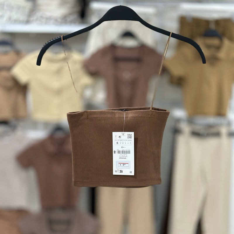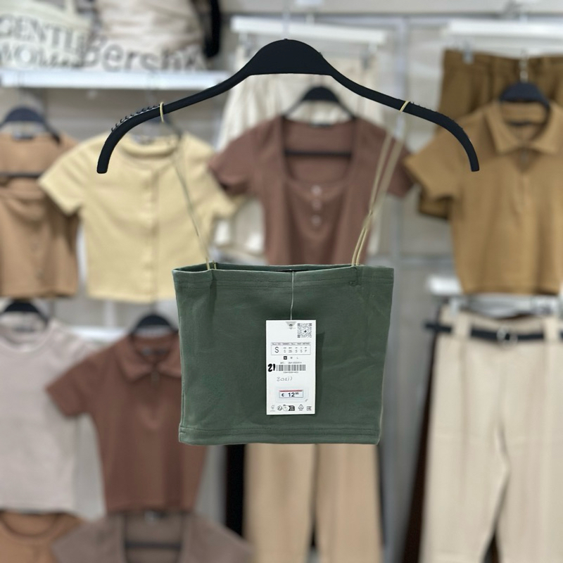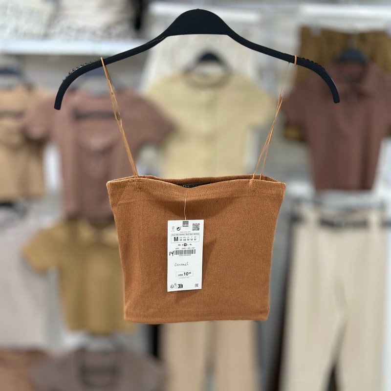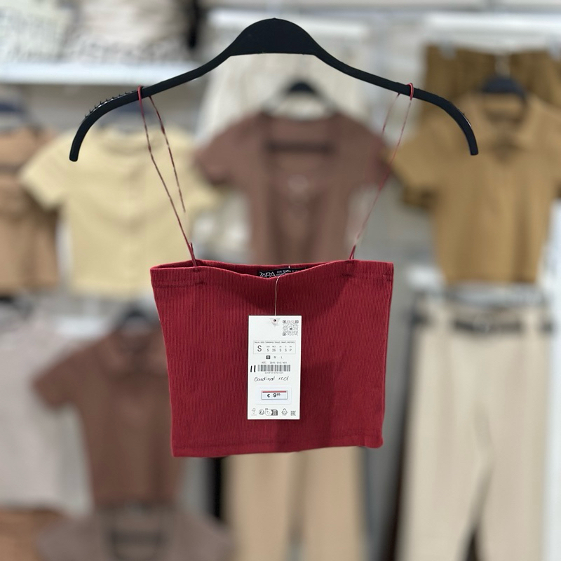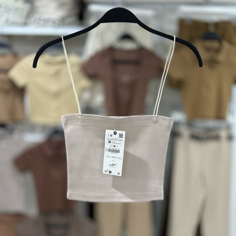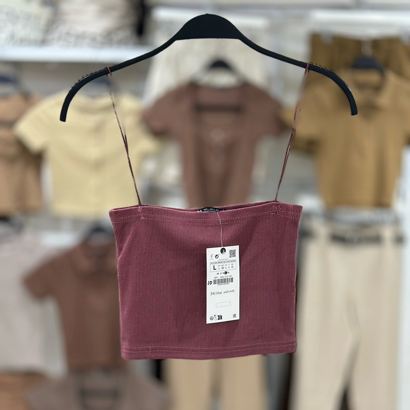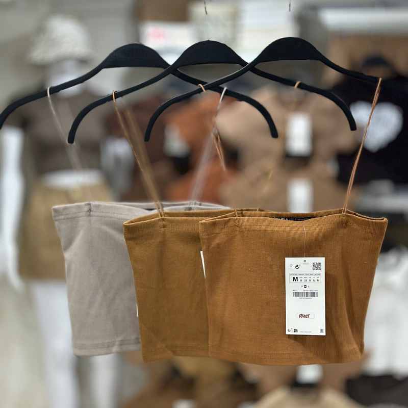 Zara string tube strappy crop top trendy bandeau ribbed spaghetti strap knitted for women