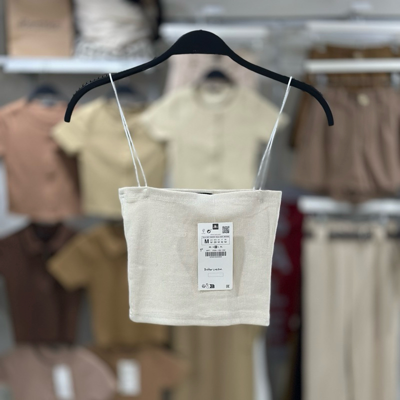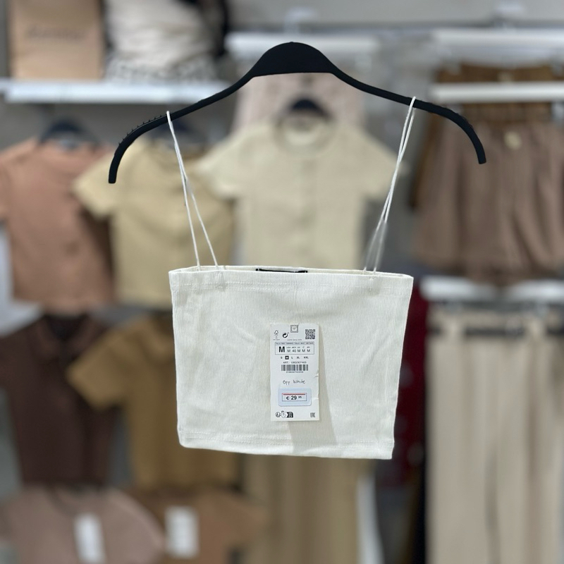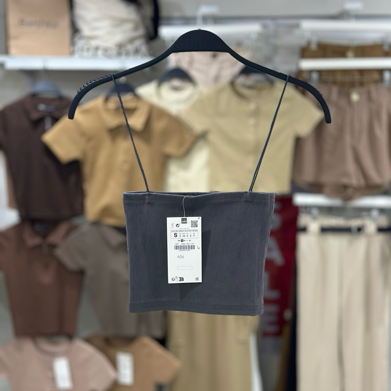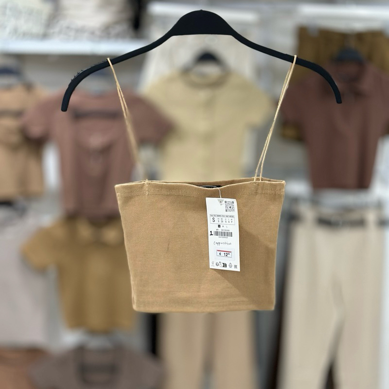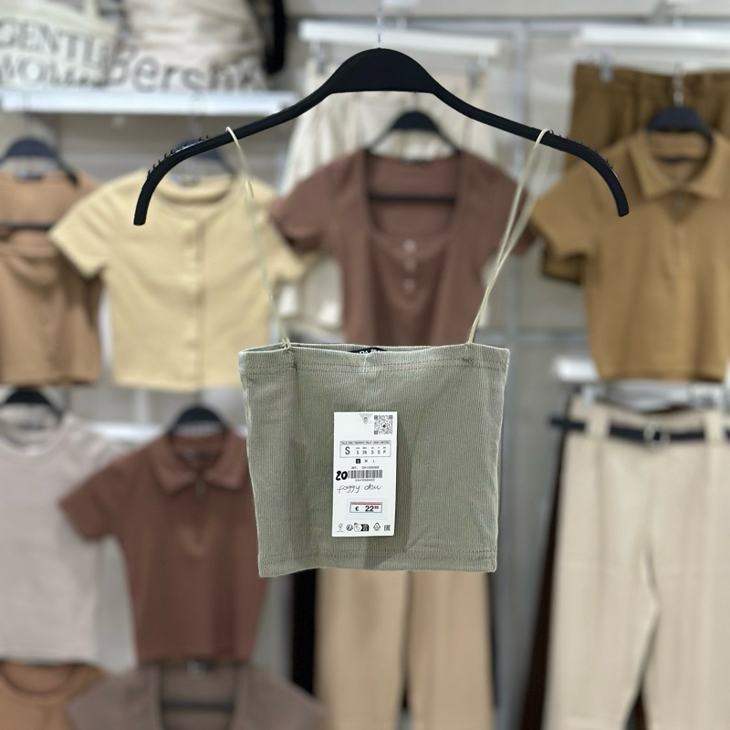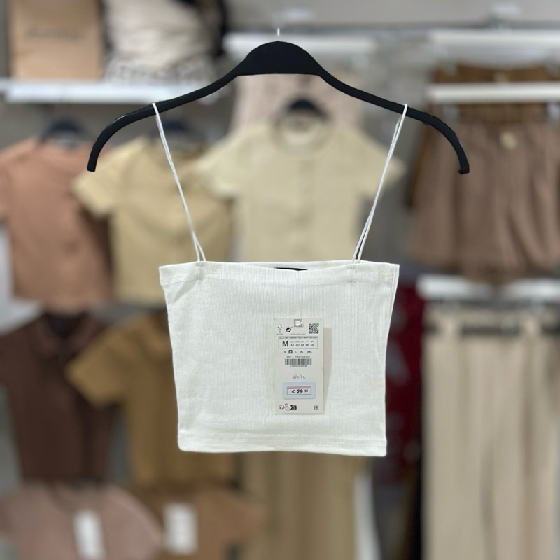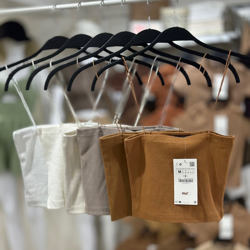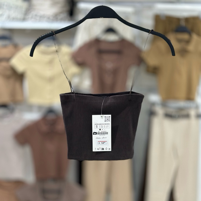 Zara string tube strappy crop top trendy bandeau ribbed spaghetti strap knitted for women