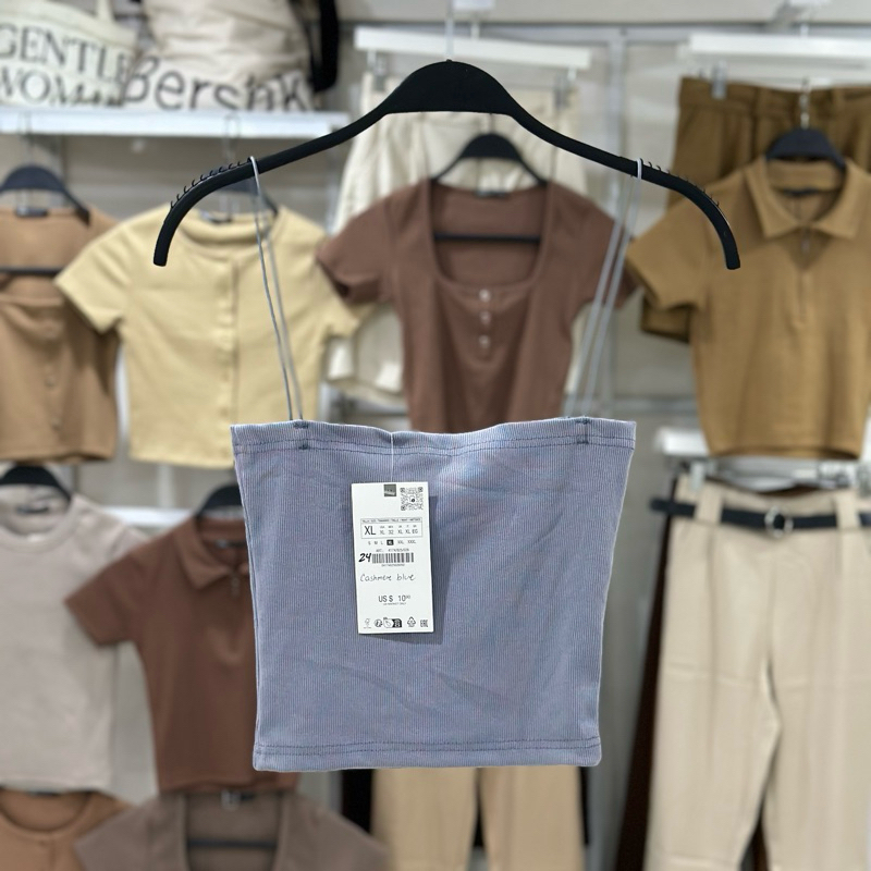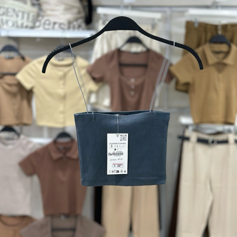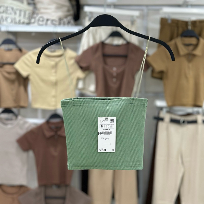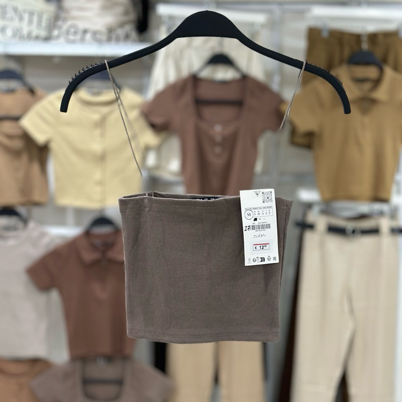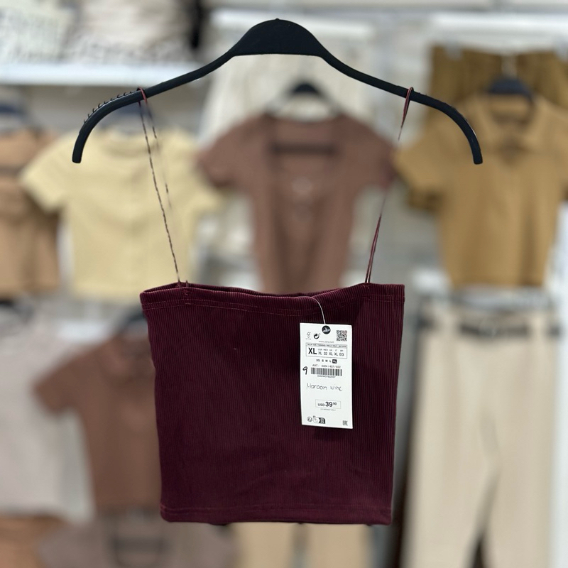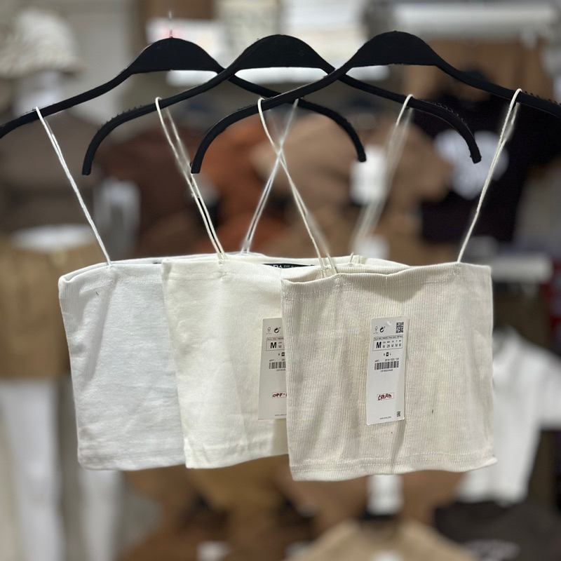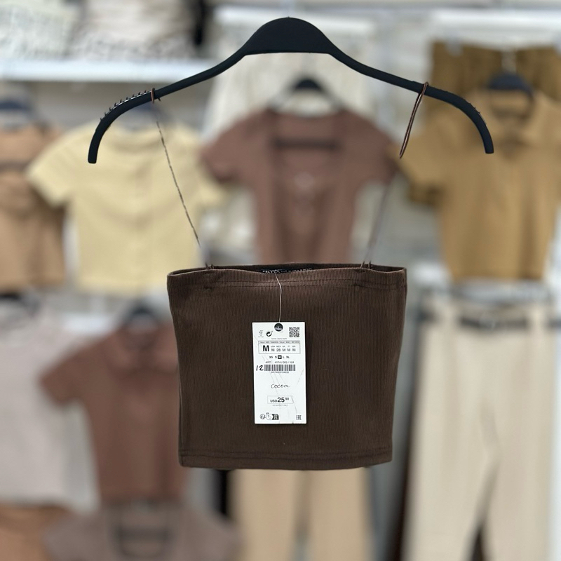 Zara string tube strappy crop top trendy bandeau ribbed spaghetti strap knitted for women
