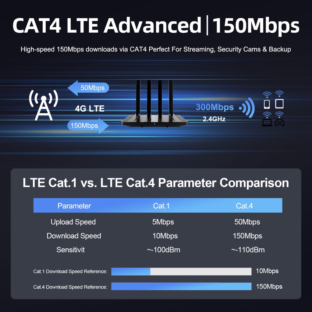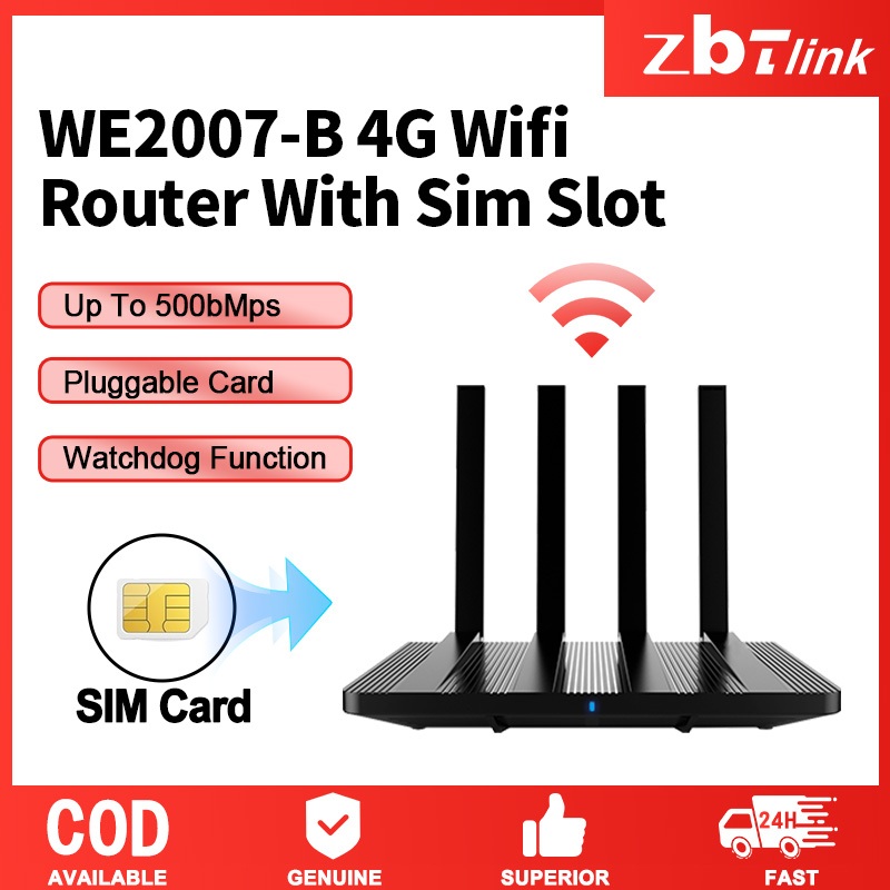 Zbtlink 4G router with 500Mbps SIM card. WAN interface connected to WiFi 2.4GHZ, easy to install