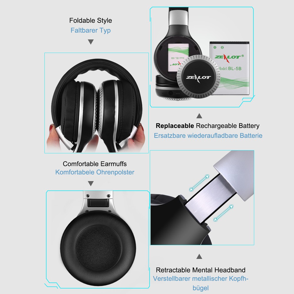 Zealot B20 Wireless Bluetooth Headset HD Sound Bass Stereo Over Ear Foldable Headphone With Mic