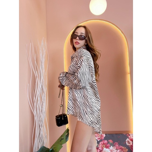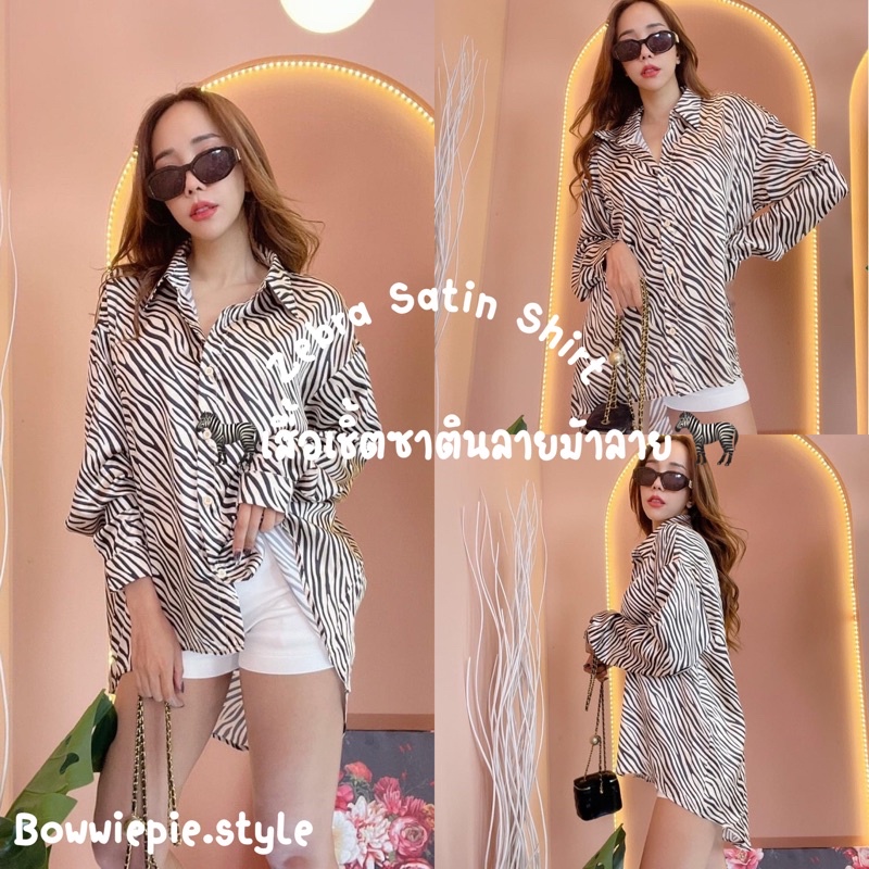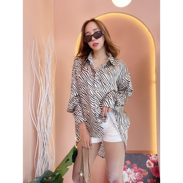 Zebra Satin Shirt Fine Satin fabric, smooth texture, short front and long back details.
