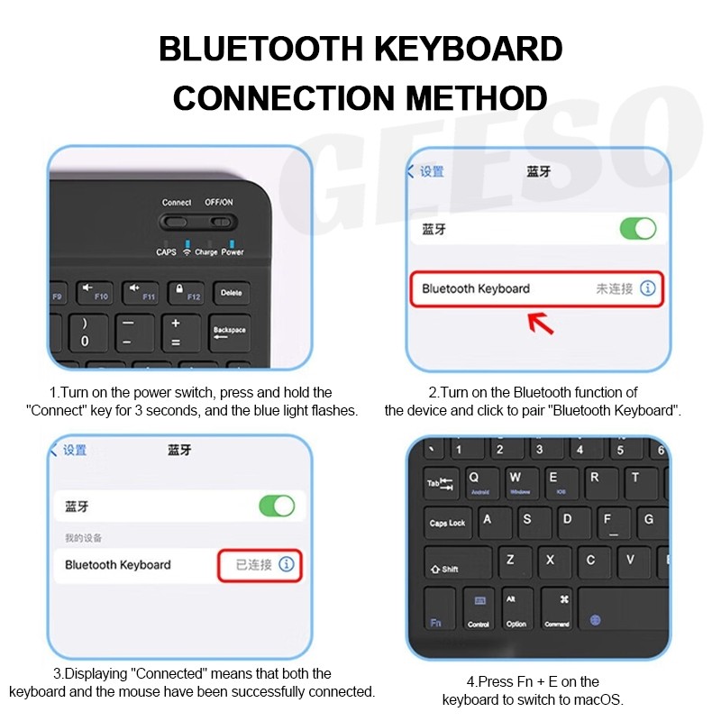 Zeus 10" Bluetooth Wireless Keyboard Mouse Combo Rechargeable Ultra Thin For Computer Cellphone Tab