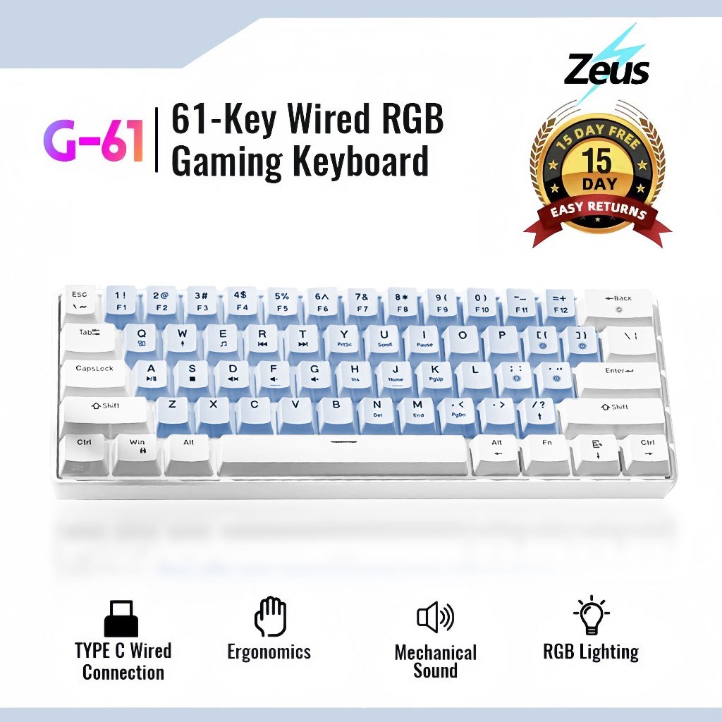Zeus 61 Key Wired Type C Mechanical Keyboard With Blue Switch RGB Gaming Portable Keyboard G-61