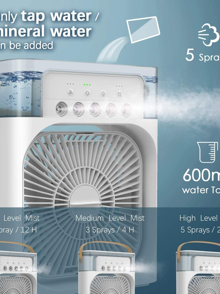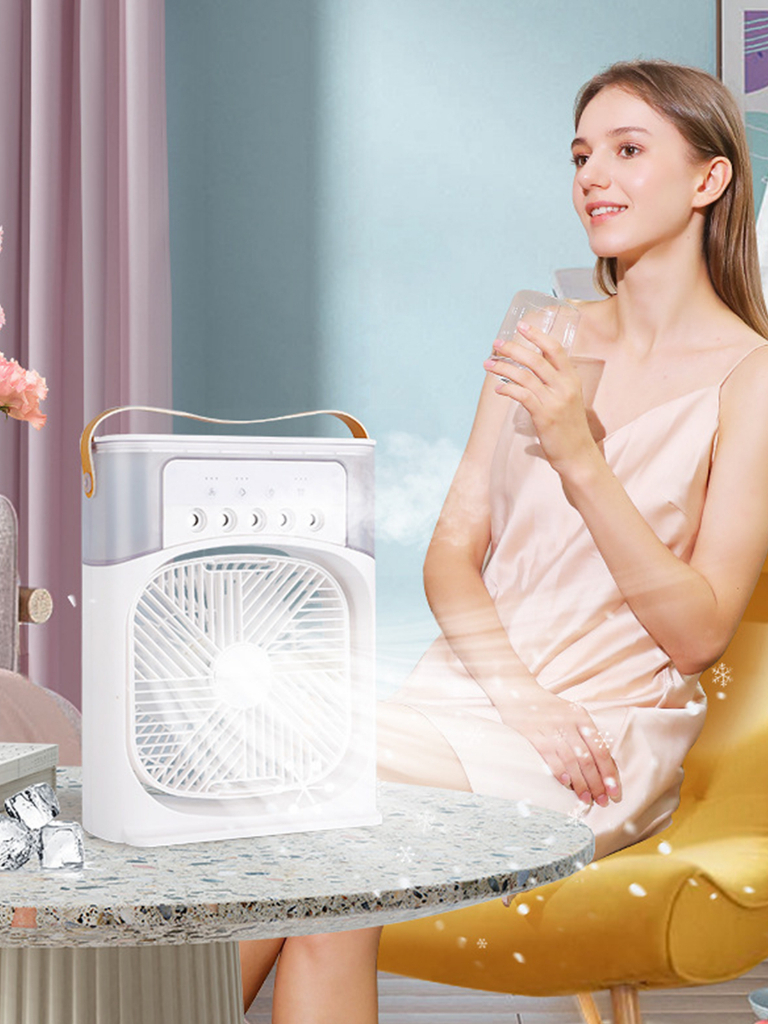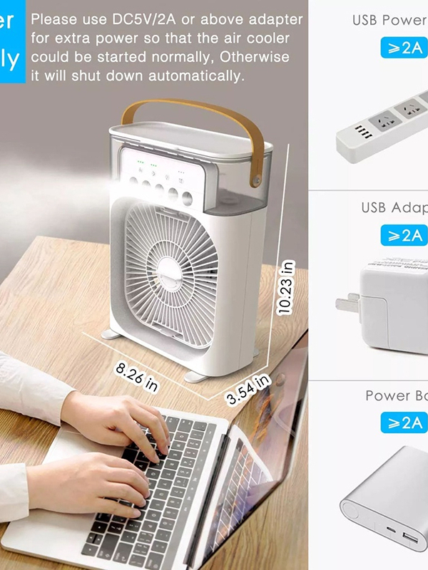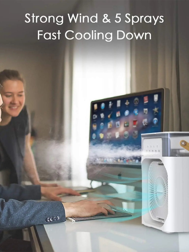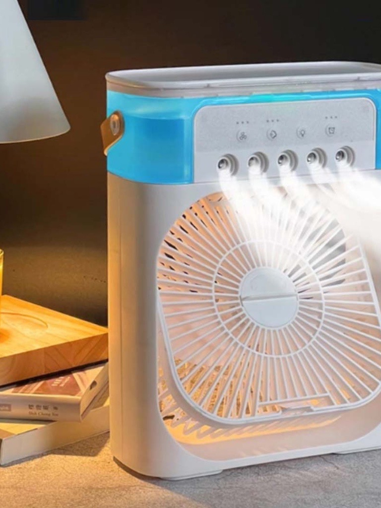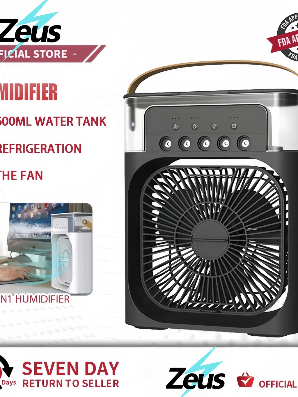 Zeus Electric Fan Air Conditioner Small Fan Mini 4 in 1 USB Mini Portable Fan Air Cooling fan LED