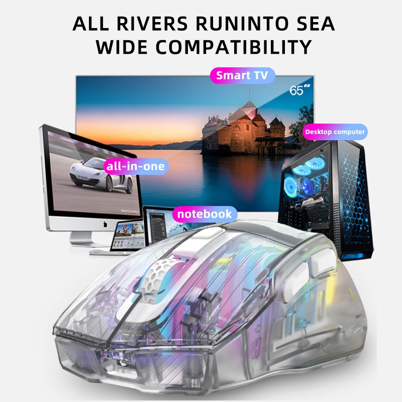 Zeus GD-008 Transparent RGB Mechanical Three Modes Gaming Mouse Bluetooth Wireless Wired Mouse