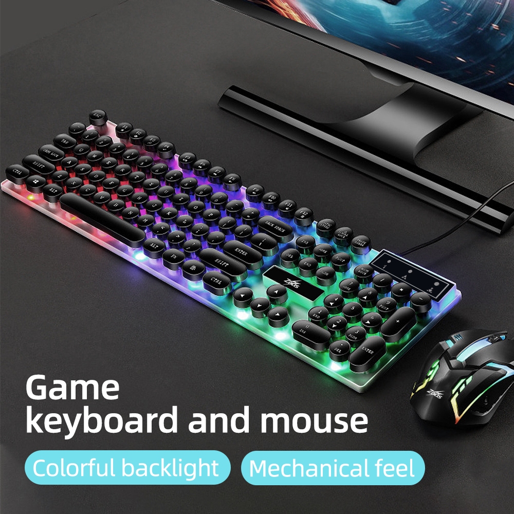 Zeus K-007 104-key punk retro backlit gaming keyboard USB wired suspension keyboard and mouse set