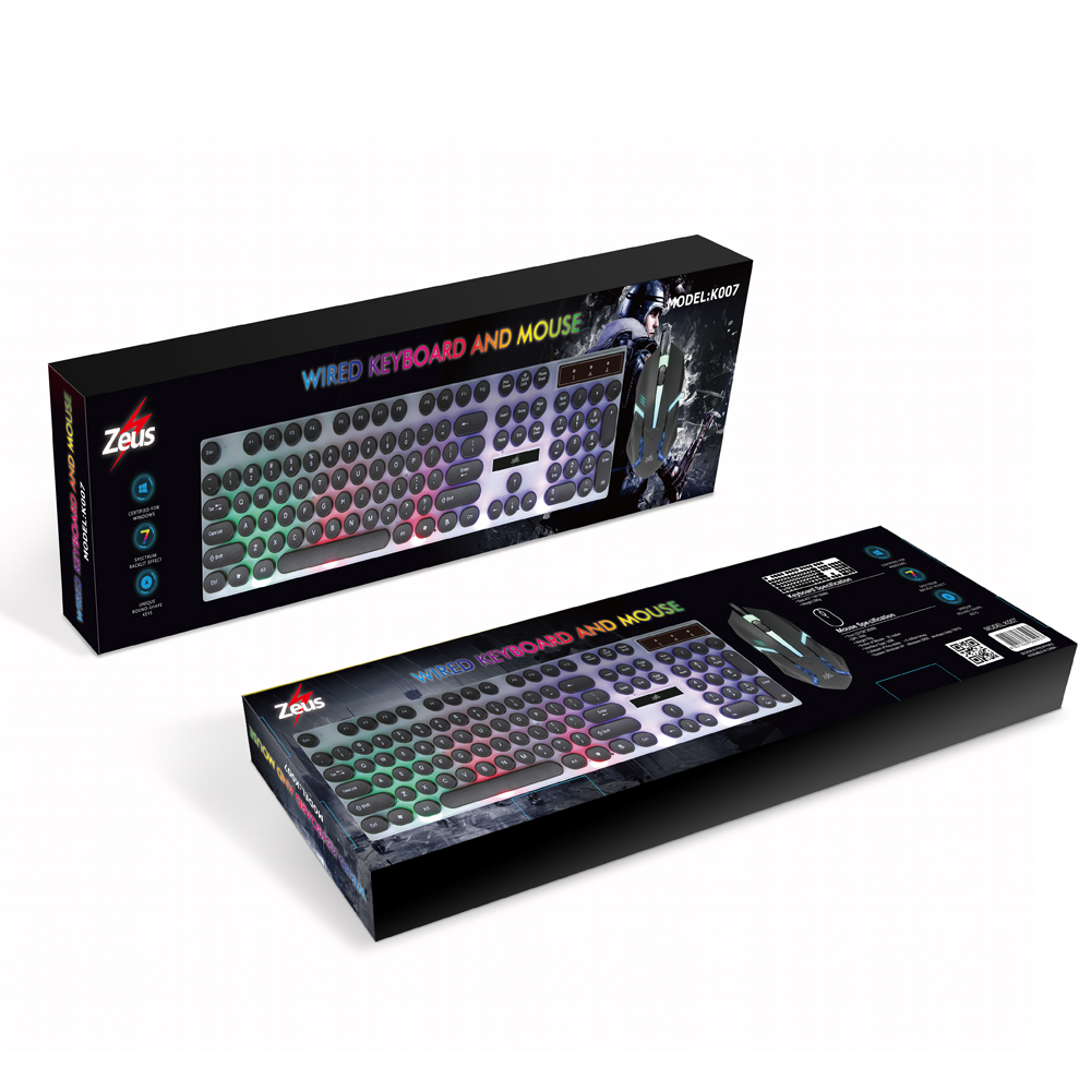 Zeus K-007 Punk Retro Backlit Gaming Keyboard USB Wired Suspended Keyboard and Mouse Set