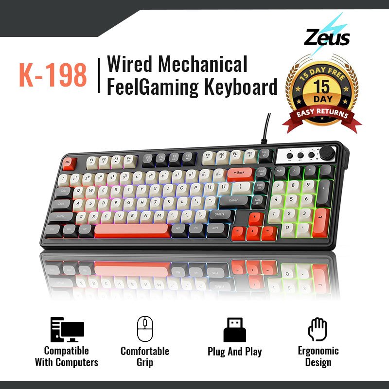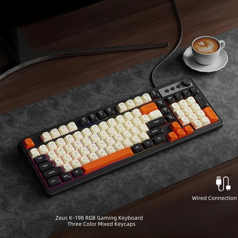 Zeus K Series Gaming Keyboard Wired Creamy Keyboard With Rainbow RGB Backlit Media Knob 98 Keys