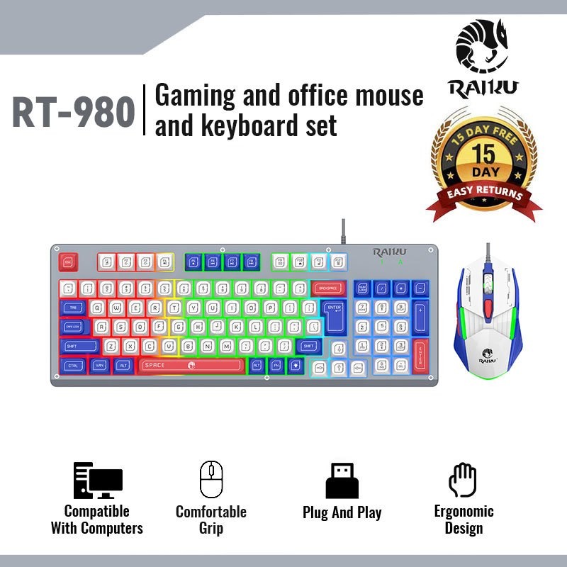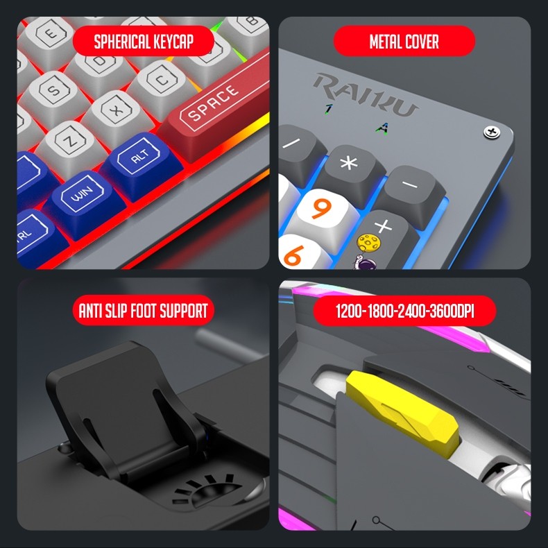 Zeus x RAIKU T98 PRO 94 Keys Metal Cover Rainbow Spherical Keycaps Gaming Keyboard And Mouse Set