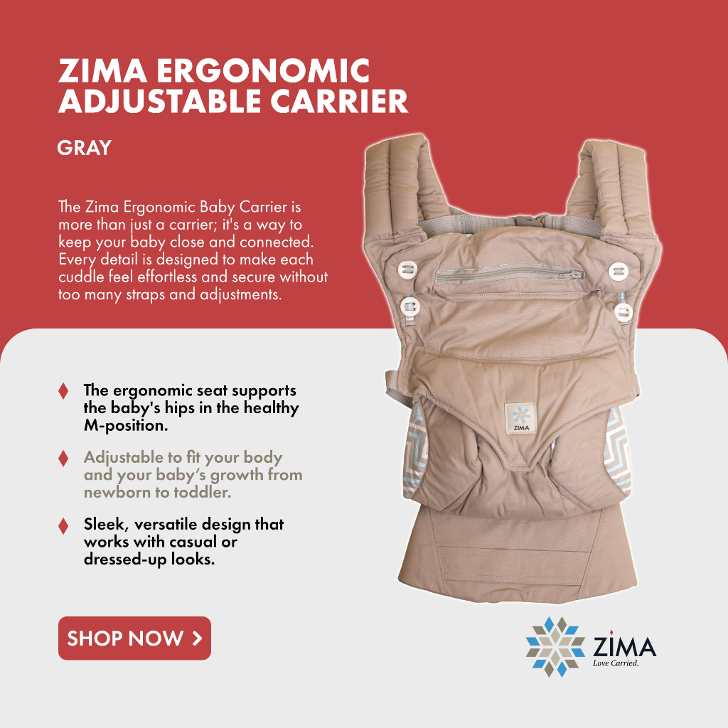 ZIMA ERGONOMIC BABY CARRIER GRAY v2 NON-MESH SAFETY-TESTED, NEWBORNS TO TODDLERS | NO HIP SEAT