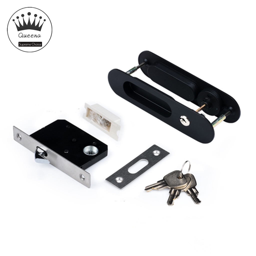 Zinc Alloy Sliding Door Lock Hidde Handle Interior Door Pull Lock Modern Anti-theft Room Lock