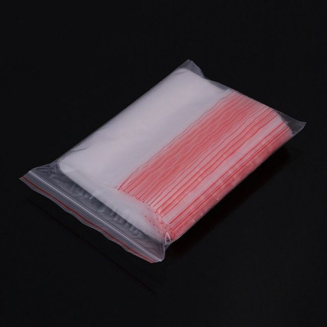 Zip Lock Resealable Plastic Bag Red White Lining Ziplock Big 100pcs