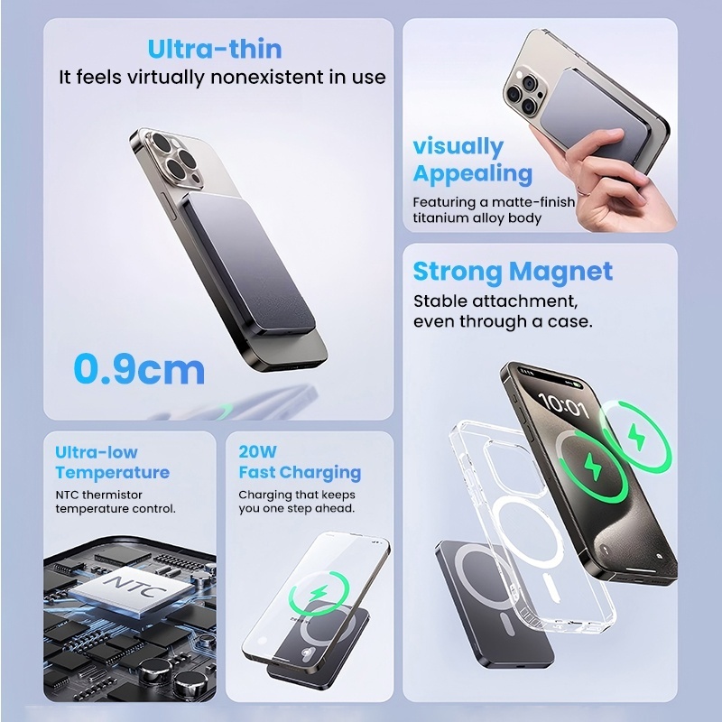 Xiaom Magnetic Powerbank Wireless Portable Slim Ultrathin For iPhone Android Type C Titanium Alloy