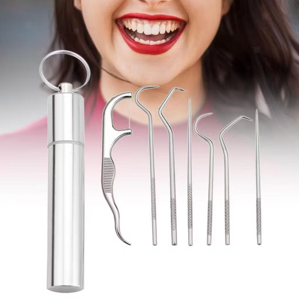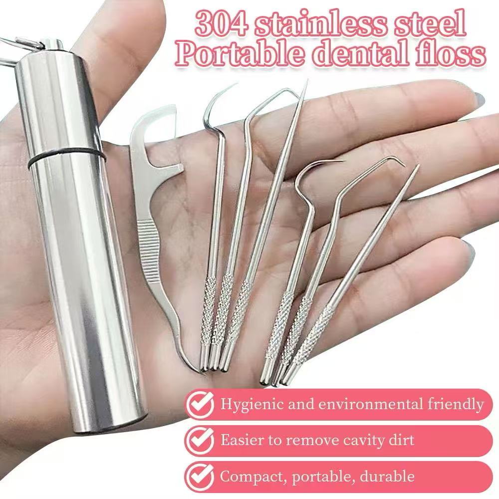 Oral Cleaning Kit Portable Picks Cleaner Portable Toothpicks Reusable Stainless Steel Pick Set