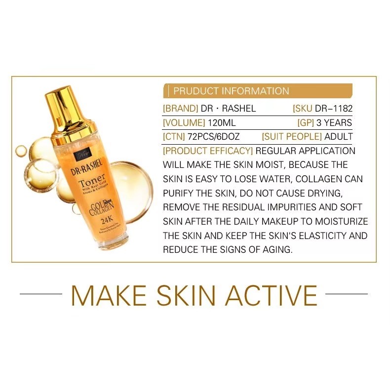 DR RASHEL Skin Care 24K Gold Collagen Toner 120ml Facial Pore Care Herbal Moisturizing Nourishing Essence Toner