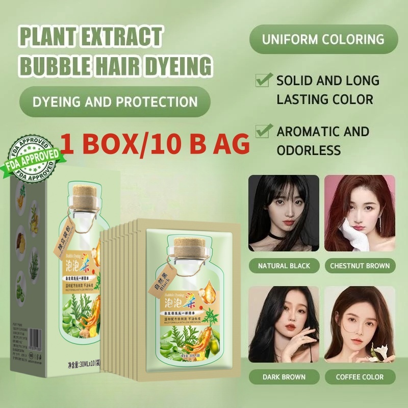 【10pcs 300ml 】Bubble Herbal Plant Hair Dye Shampoo Organic Color Hair Blackening Permanent Ash Brown