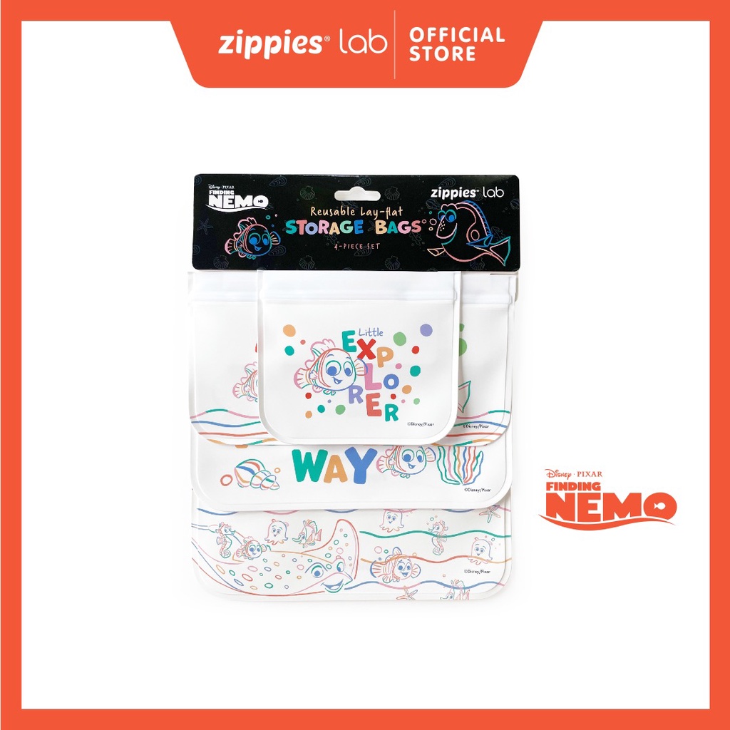 Zippies Lab Disney Pixar Finding Nemo Reusable Layflat Storage Bags (Set of 4)