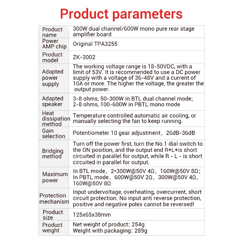 Zk-3002 Pure Post-Level Digital Power Amplifier Board High Tpa3255 Stereo 300w+300W Bridge Mono 600w