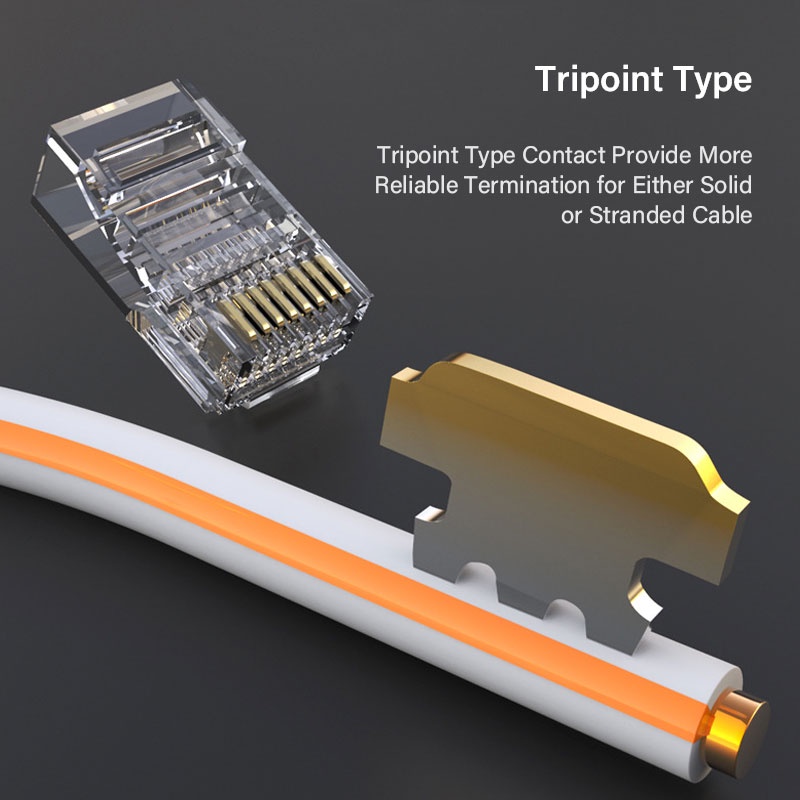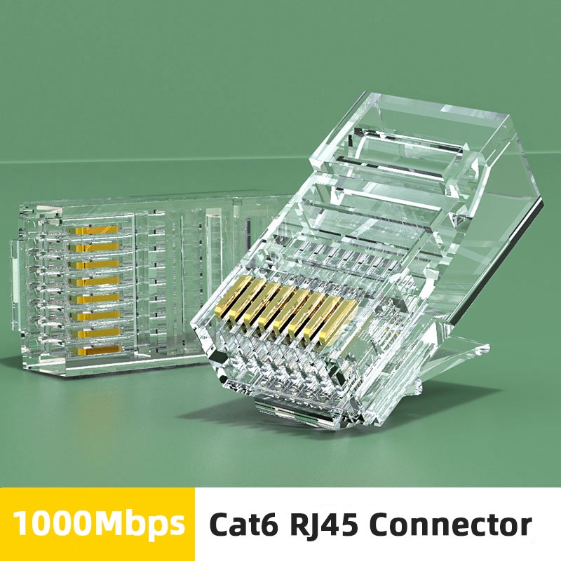 ZoeRax Cat6 RJ45 Connector 8P8C Modular Ethernet Cable Head Plug 50U Gold-plated Crimp Network RJ45 Crimper Connector Cat5e