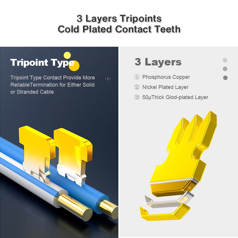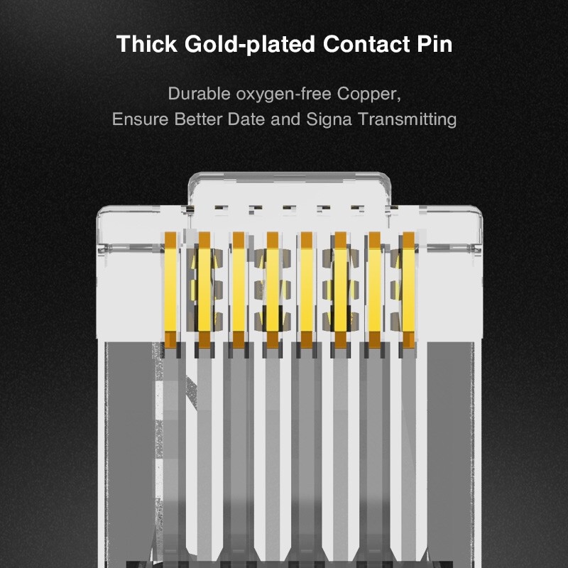 ZoeRax Pass Through RJ45 Connector, Cat6 Cat6a 30u Gold Plated Shielded Modular Plug 1.2mm Hole for STP Ethernet Cable