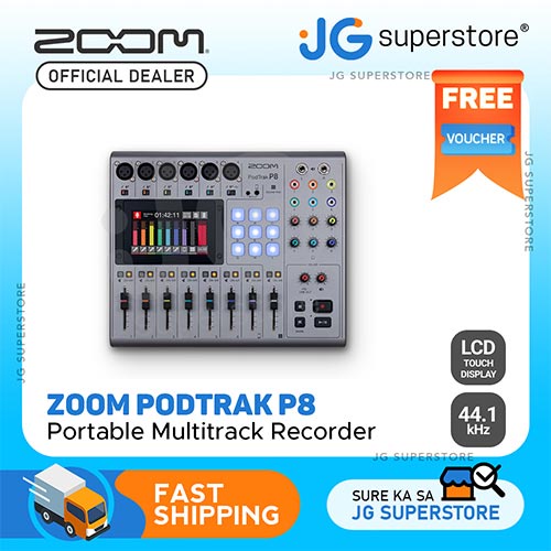 Zoom PodTrak P8 Podcast Recorder 6 USB Audio Interface with Onboard Editing Microphone & Headphone