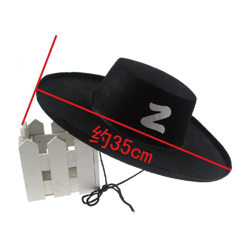 Zorro Bolero Hat Theme Party Bandit Costume Halloween Cosplay Dress Up Festival Cool Fancy Stage Show
