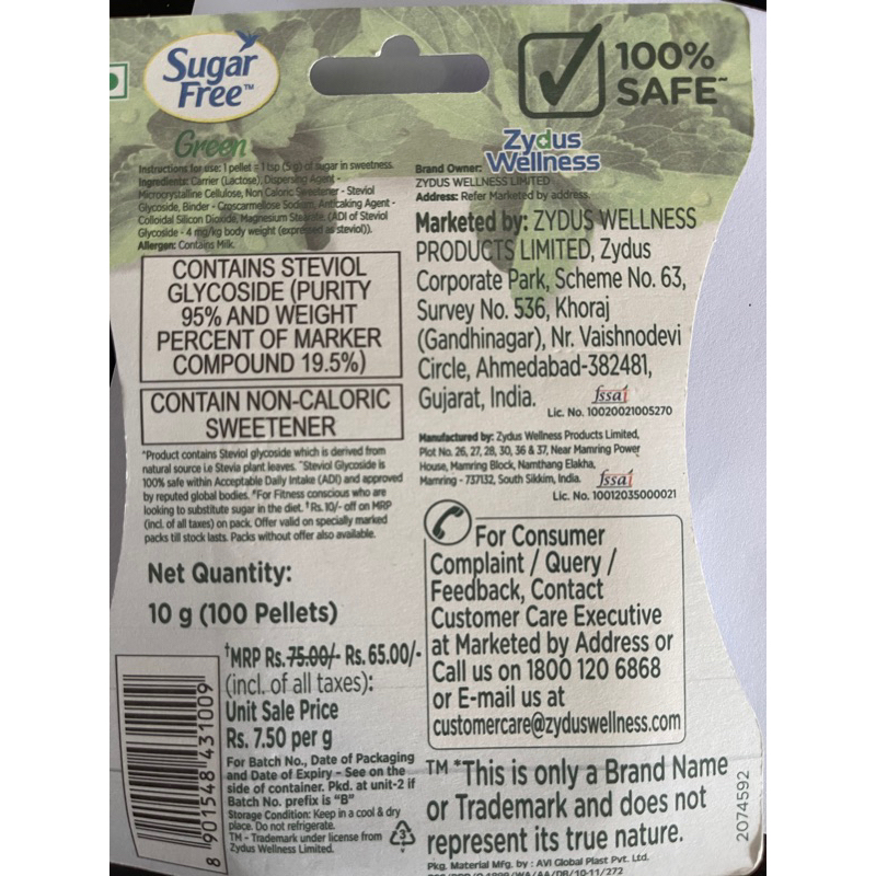 Zydus Sugar Free Green Stevia Sweet Without Calories