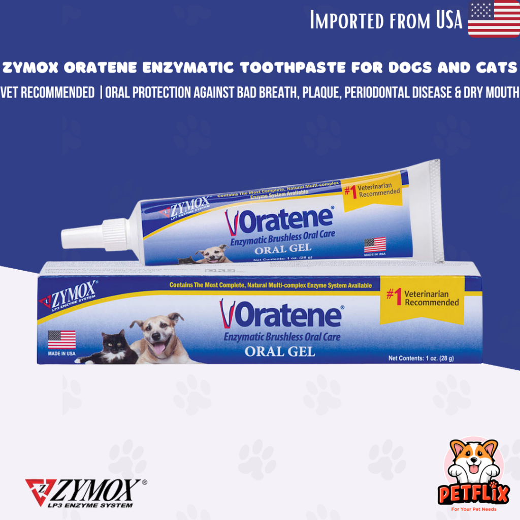 Zymox Oratene Enzymatic Dental Gel Safe Toothpaste for Dogs & Cats, Fights Bad Breath Oral Care 28g
