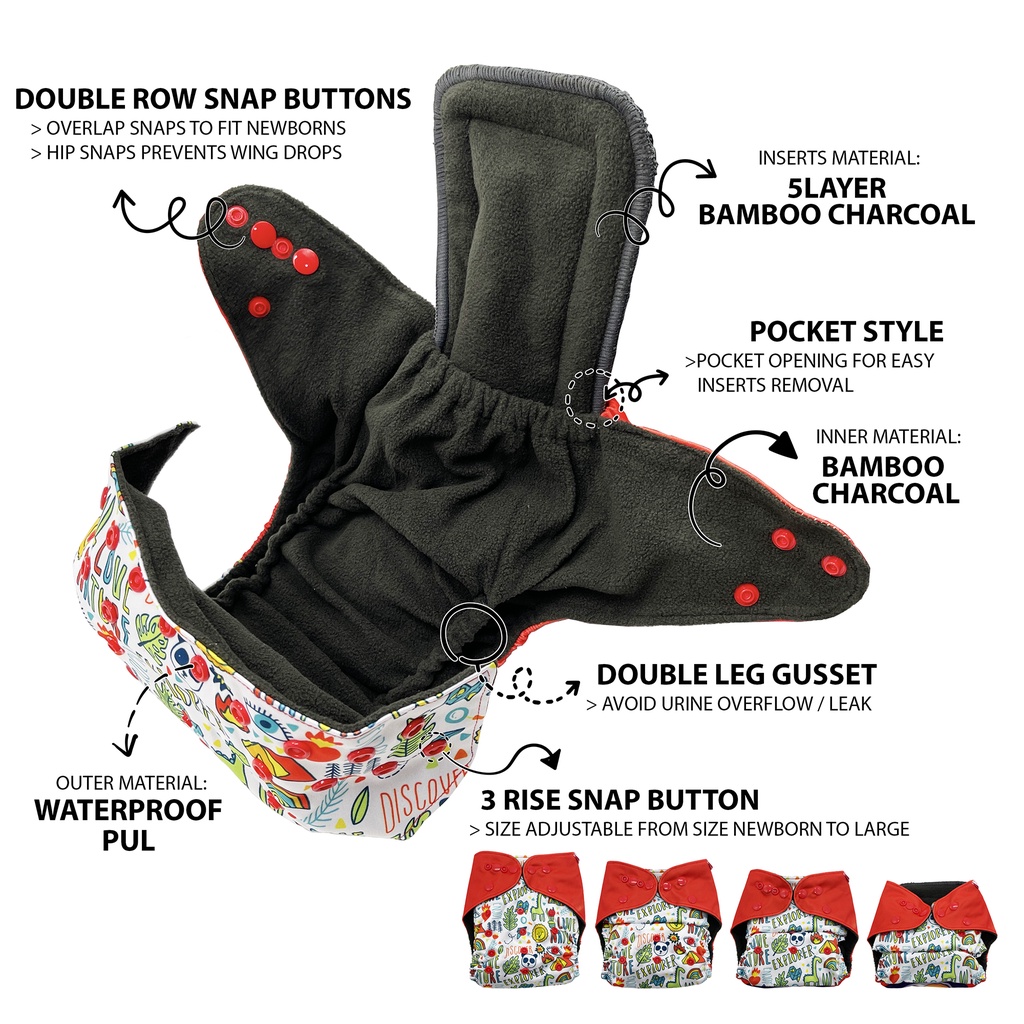 a Dia&Sia bamboo charcoal cloth diaper with bamboo charcoal inserts and double Leg Gusset