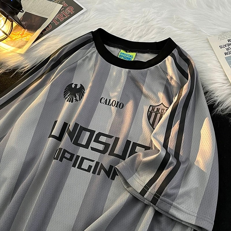 aesthetic t shirt for men oversized stripe couple vintage casual Korean shirts shirt boyish outfit