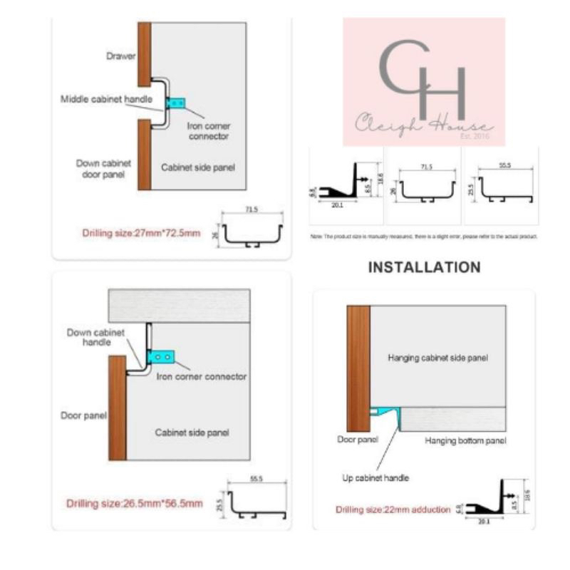 aluminum cabinet hidden Grab handle C J L type black 1.5mts long