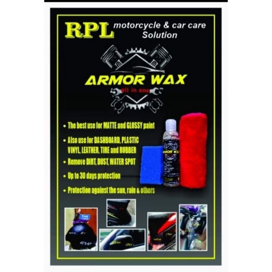 armor WAX for MATTE & GLOSSY free 1 helmet freshener, 1 car shampoo 1 sponge & 1 towel