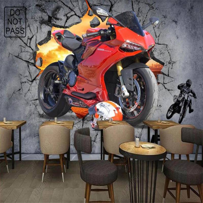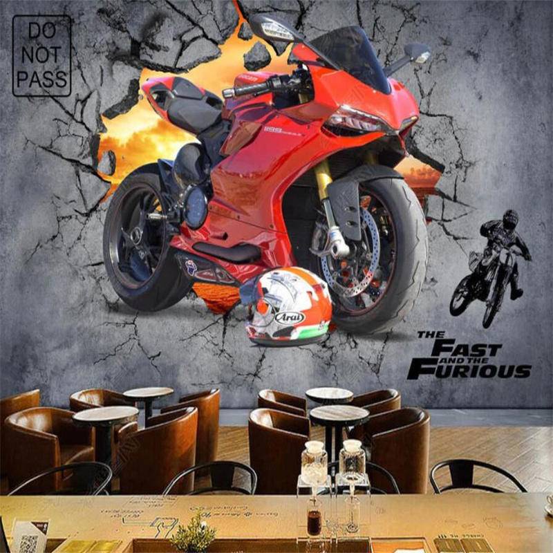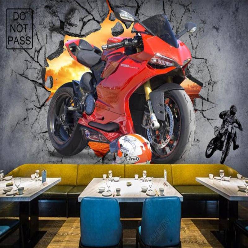 bar motorcycle room ktv s customization adhesive self kidwallpaper 3d frescoes street wall wallpaper art graffiti cafe